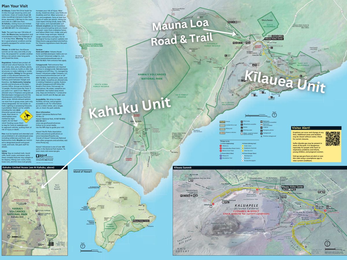 Map of Hawaii Volcanoes National Park Units - 2TravelDads